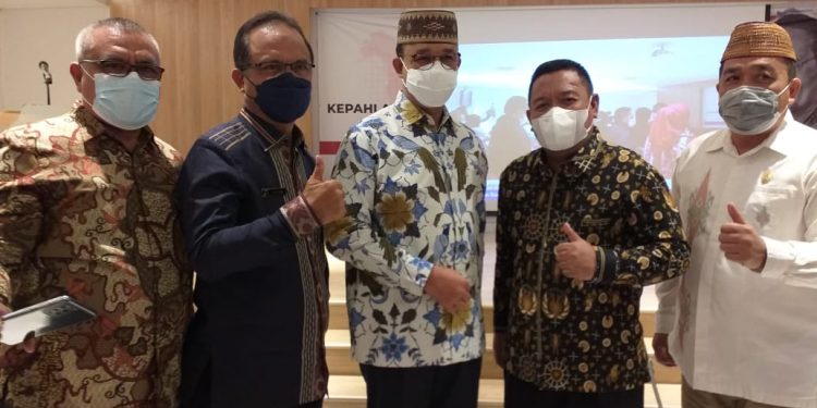 Century.co.id (Jakarta) – Dalam Rangka Seminar Nasional Pemberian Gelar Pahlawan Tokoh Gorontalo Dr (HC) Hans Bague Yasin, Ketua Dewan Pwakilan Rakyat Daerah (DPRD) Kabupaten Gorontalo, Syam T. Ase bersua dengan Gubernur DKI Jakarta, Anies Baswedan. Selasa 22/2/20222 di Jakarta.