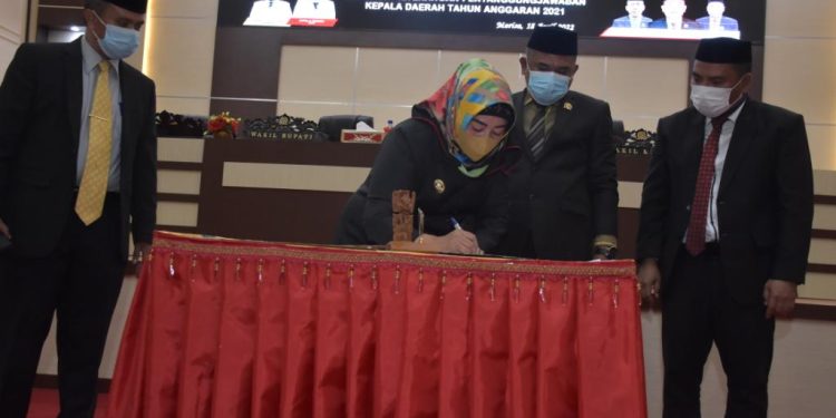 Dalam sambutannya Wabup Suharsi mengatakan, bulan ini memasuki tahapan akhir dari rangkaian tahapan yang dilaksanakan oleh DPRD atas laporan keterangan pertanggungjawaban kepala daerah tahun 2021,