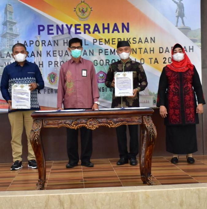 Diketahui, penyerahan LHP atas laporan keuangan pemerintah daerah kabupaten pohuwato bersamaan dengan kabupaten boalemo dan kabupaten gorontalo utara yang ketiganya mendapatkan opini WTP.