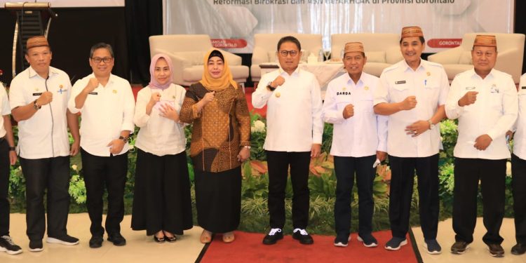 Century.co.id (Pohuwato) – Rapat Koordinasi Organisasi dan Tata Laksana se- Provinsi Gorontalo Tahun 2022 dengan tema meneguhkan birokrasi yang netral dan profesional melalui pencepatan reformasi birokrasi dan ASN BerAKHLAK di provinsi gorontalo yang dibuka Penjabat Gubernur Gorontalo, Dr. Ir. Hamka Hendra Noer turut dihadiri Wakil Bupati Pohuwato, Suharsi Igirisa, Rabu, (20/07/2022).