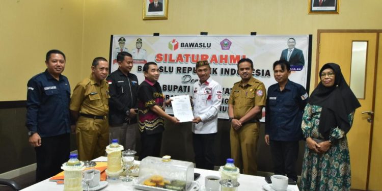 Century.co.id (Pohuwato) – Bupati Pohuwato, Saipul A. Mbuinga menerima kunjungan sekaligus silaturahmi dari Badan Pengawas Pemilu (Bawaslu) Republik Indonesia yang diwakili Karo Keuangan dan BMN Bawaslu RI, Pakerti Luhur, Ak.MM yang didampingi Kepala Sekretariat Bawaslu Provinsi Gorontalo, Nikson Entengo bersama Kabag Administrasi, Admira Wantogia serta Korsub Keuangan, Isna Makrun serta dari pohuwato yakni Ketua Bawaslu, Ramlan bersama anggota, Rahmawati Pahabu, dan Koordinator Sekretariat Bawaslu Pohuwato, Rahmat Djakaria di meeting room kantor bupati, Selasa, 02/08/2022).