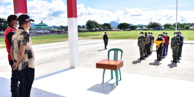 Century.co.id (Pohuwato) – Bupati Pohuwato, Saipul A. Mbuinga menyaksikan latihan dari pasukan pengibar bendera pusaka (Paskibraka) yang akan bertugas pada upacara detik-detik proklamasi dan upacara penurunan bendera pada 17 Agustus mendatang.