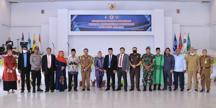 Century.co.id (Pohuwato) – Bupati Pohuwato yang diwakili Sekretaris Daerah, Iskandar Datau menghadiri pengambilan sumpah dan pelantikan Rektor Univesitas Pohuwato (UNIPO) masa bakti 2022-2026, Jorry Karim, S.Kom.,M.Kom yang secara resmi dilantik oleh Ketua Yayasan Pengembangan Ilmu Pengetahuan dan Teknologi (YPIPT) Icshan Gorontalo, Dr. Hj, Juriko Abdussamad, M.Si, Selasa (06/09/2022).