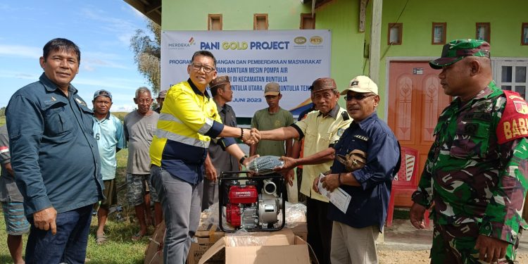 Century.co.id, (Pohuwato) – Untuk membantu kebutuhan irigasi persawahan di tiga desa di Kecamatan Buntulia, Kabupaten Pohuwato, manajemen Pani Gold Project menyerahkan bantuan pompa air kepada petani pada Hari Kamis, (15/06/2023).