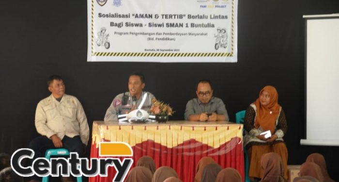 Century.co.id, (Pohuwato) – Pani Gold Project (PGP) bekerjasama dengan Satlantas Polres Pohuwato menyelenggarakan sosialisasi aman dan tertib berlalulintas di SMAN 1 Buntulia, Jumat, (08/09/2023).