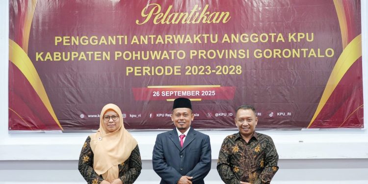 Century.co.id, (Pohuwato) – Komisi Pemilihan Umum Republik Indonesia (KPU RI) secara resmi melantik Saudara Toyibin sebagai anggota KPU Kabupaten Pohuwato melalui mekanisme Pergantian Antar Waktu (PAW). Pelantikan tersebut dilaksanakan secara daring dari Aula KPU Kota Gorontalo dan dipimpin langsung oleh Ketua KPU RI, Moch. Afifuddin, pada Jumat (26/9).