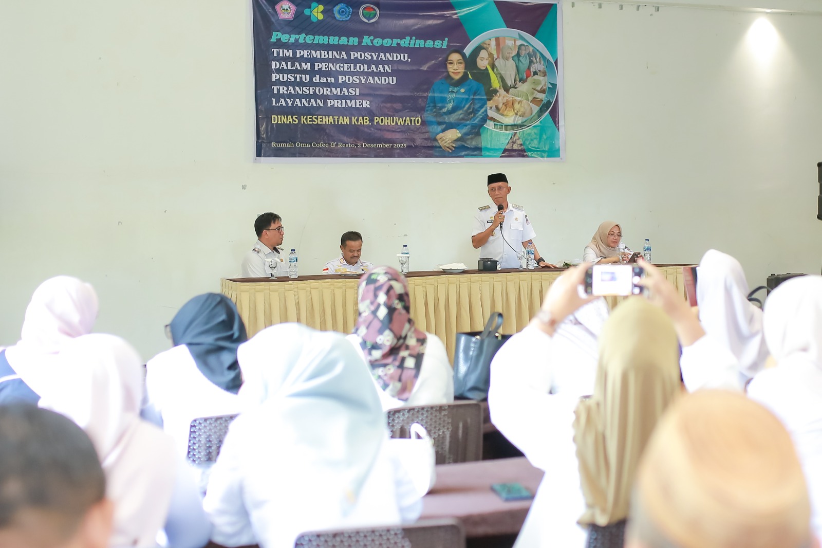 Century.co.id, (Pohuwato) – Dinas Kesehatan Kabupaten Pohuwato melaksanakan Pertemuan Koordinasi Tim Pembina Posyandu terkait pengelolaan Pustu dan Posyandu dalam rangka transformasi layanan primer yang dibuka Wakil Bupati Pohuwato, Iwan S. Adam.