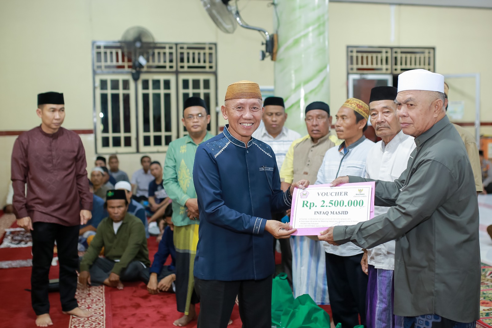 Pada kesempatan tersebut, Wakil Bupati secara simbolis menyerahkan paket Ramadan kepada kaum duafa dari Baznas Pohuwato. Selain itu, diserahkan pula voucer infak masjid kepada takmirul Masjid Al-Muchlisin sebagai bentuk dukungan pemerintah daerah terhadap kegiatan keagamaan dan operasional masjid.